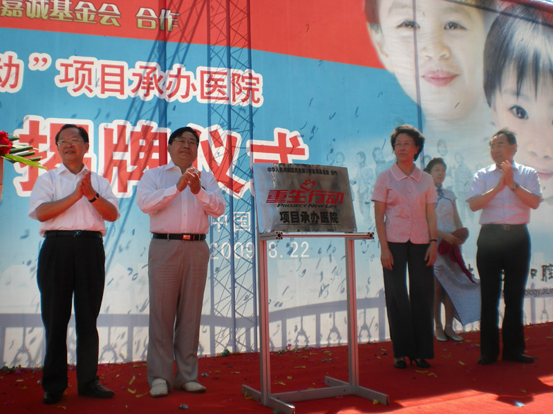 8月22日上午,在新落成的吉大口腔医学院新医疗综合楼前,民政部社会福利和慈善事业促进司兼重生行动项目办公室主任、副司长张世峰,李嘉诚基金会代表、李嘉诚汕头大学发展基金会执行董事李玉光,吉大党委书记陈德文,长春市副市长郑文芝共同为吉林省“重生行动”项目承办医院揭牌,吉大口腔医学院成为“重生行动”在吉林省的惟一承办单位。